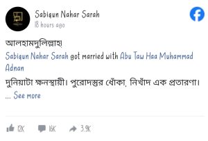 মঙ্গলবার (২ ডিসেম্বর) এক ফেসবুক পোস্টে এ তথ্য জানিয়েছেন সাবিকুন নাহার নিজেই।
